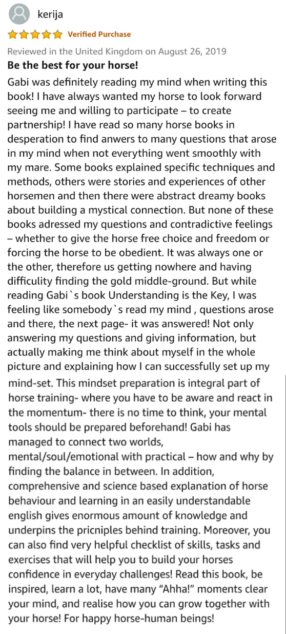 If you sometimes have trouble to understand why your horse reacts the way he does, read chapter 5 to get a whole new understanding why horses act and react the way the do.