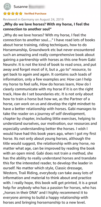 Everything I describe in this book is what has brought me great results with my own horses and what has been working great for my customers and their horses.